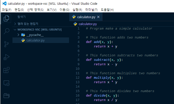 chopokmado@DESKTOP-D7M489N:~/workspace/workspace-vsc$ code . (이시점에 VSCODE 창이 뜬다)