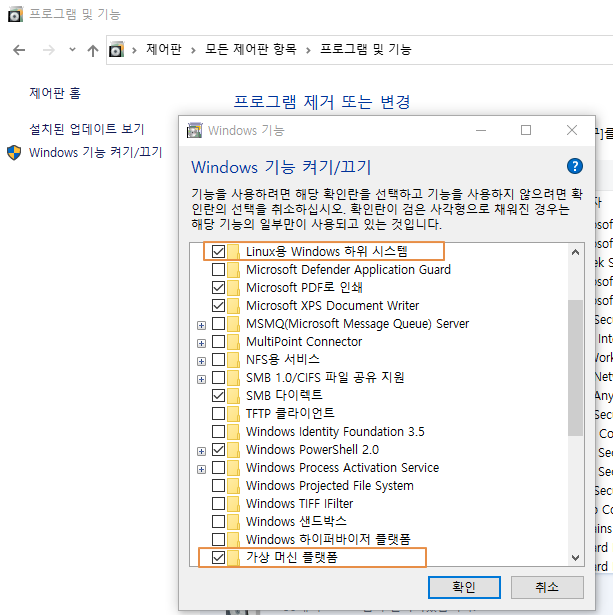 2. WSL2 관련 기능 활성화